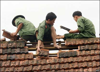 Quân đội cũng được huy động tham gia giúp người dân sau bão, thí dụ tại huyện Kỳ Anh, tỉnh Hà Tĩnh.