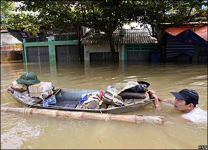 Người đàn ông đẩy chiếc thuyền trên chở tài sản của mình trên con phố ngập lụt sau bão Lekima ở Việt Nam. | |||||||||||||||||||||||||||||||||||||||||||||||||||||||||||||||||||||||||||||
