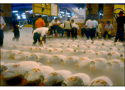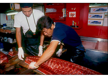 Cá mua về được lọc thịt làm gỏi sashimi hoặc làm sushi. Thế giới cũng bắt đầu ăn gỏi cá ngừ, và nhu cầu về cá ngừ trên toàn cầu ngày càng tăng. Nhật Bản đã đưa ra một chương trình truy tìm xuất xứ cá ngừ bán tại thị trường để ngăn chặn nạn bắt trộm. |