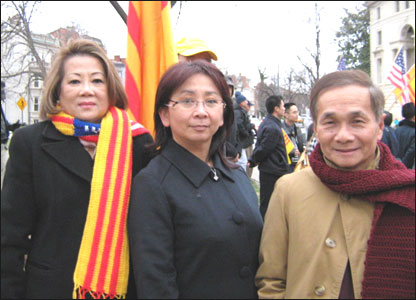 Có những người biểu tình như cô Lữ Anh Thư (người đứng giữa) thấy 'rối loạn' khi biểu tình ở cả đại sứ quán VN và TQ trong cùng ngày.