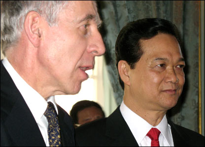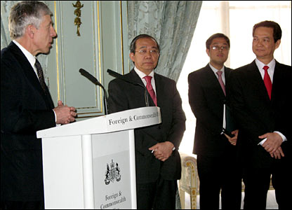 Thủ tướng Nguyễn Tấn Dũng cùng các quan chức cao cấp của chính phủ Việt Nam tới Bộ Ngoại giao Anh sáng 5/3 để chứng kiến lễ ký kết một số văn bản hợp tác. Đại diện cho chính phủ Anh ra tiếp đón là Bộ trưởng Jack Straw.