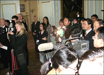 Đông đảo các phóng viên từ Việt Nam đi theo tường thuật chuyến công du của ông Dũng tới Anh. |