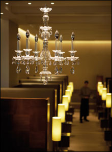 ...và bao gồm các phòng ăn riêng, với đèn chùm pha lê trang trí.