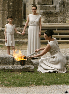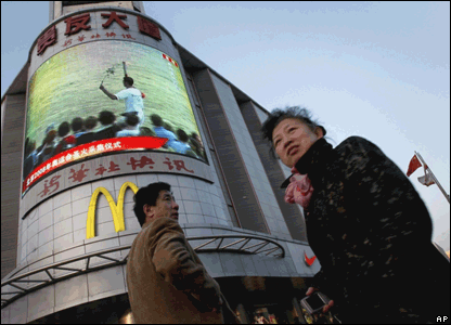 Truyền thông nhà nước hôm nay loan tin rầm rộ về lễ đốt đuốc thế vận ở Olympia nhưng dân chúng ở Trung Quốc không nhìn thấy cảnh biểu tình.