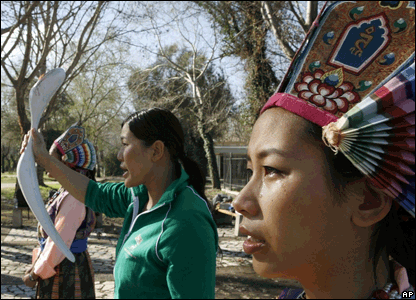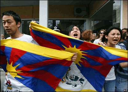 Trước đó ngày 13 tháng Ba, cũng tại Olympia này, cô Tsultim Gope (giữa), một vận động viên của Tây Tạng đã cùng một số đồng hương kêu gọi sự chú ý của thế giới. |