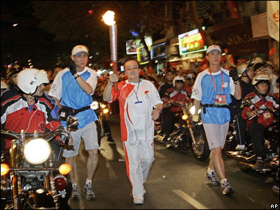 Ngọn lửa đã chuyển bằng chuyên cơ tới TP Hồ Chí Minh từ Bình Nhưỡng vào tối hôm thứ Hai nhưng mãi đến chiều tối hôm sau mới tiến hành rước đuốc.