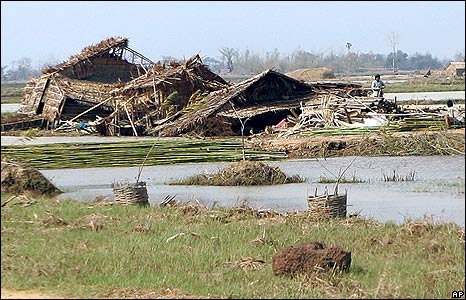 Có rất nhiều ngôi làng đã bị gió bão quật nát toàn bộ, bị ngập nước nặng nề như thế này.