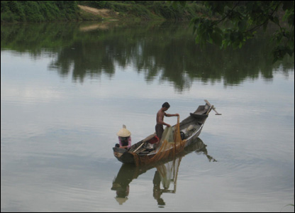 Trên sông Ô Lâu, đoạn chảy qua làng cổ Phước Tích, như mọi ngày, đôi vợ chồng dân chài vẫn vất vả kiếm sống trên sông.