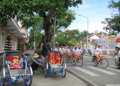 Xích lô Huế trong mùa hội.