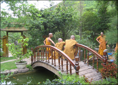 Buổi chiều, các nhà sư trong chùa Huyền Không Sơn Thượng đang chuẩn bị làm đẹp những tiểu cảnh trong chùa để đón khách thập phương.