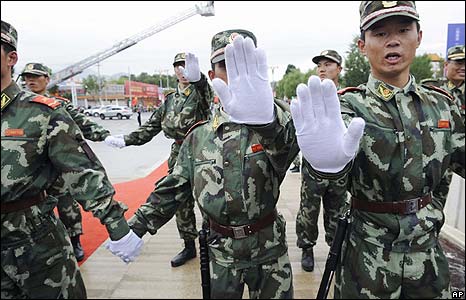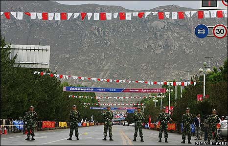An ninh được thắt chặt dọc tuyến đường, giữa lúc Trung Quốc đang cố sức đảm bảo cho lễ rước đuốc diễn ra êm ả. |