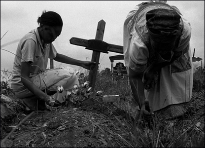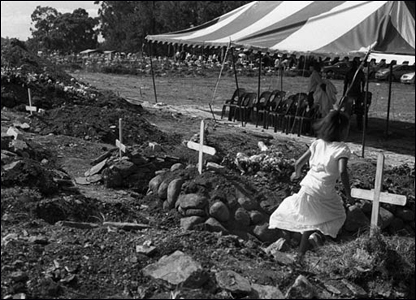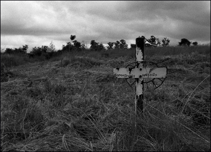 Trong nghĩa trang, những ngôi mộ nhấp nhô và phủ đầy cỏ dại. Phía dưới cuối mộ bao giờ cũng có biển đánh số và một cây thánh giá có tên, tuổi và ngày mất.