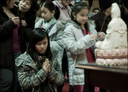 Trong buổi lễ cầu kinh đầu năm mới, mỗi người như muốn tránh xa bộn bề công việc hàng ngày để tìm lại những giá trị đạo đức tâm linh cũng như những nét văn hoá tổ tông từ muôn đời.