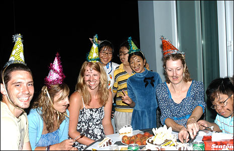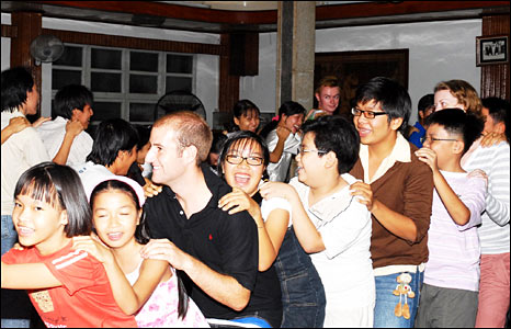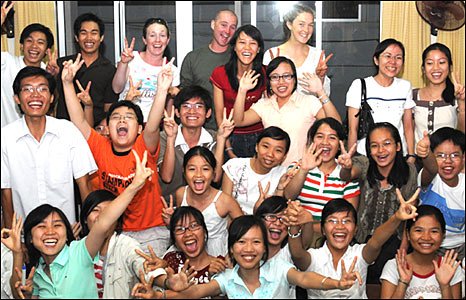 Các sinh viên đến từ Anh trong buổi chia tay với lớp học tiếng Anh tại Hội Hữu Nghị, Mặt Trận tổ quốc VN tỉnh Tiền Giang.