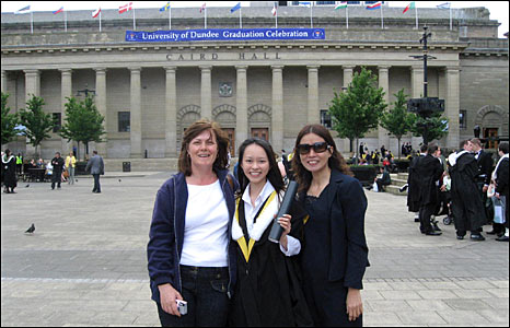 Hè 2008, tôi đã tốt nghiệp Khoa Kinh doanh Quốc tế, Trường Đại học Dundee. Niềm vui của tôi như được nhân đôi, vì vừa có mẹ đẻ là Bùi Thuý Hằng vừa có cả mẹ nuôi người Anh là Laura Allan đến dự lễ tốt nghiệp. Hy vọng với kiến thức học tại VN và Anh quốc, tôi sẽ phát huy năng lực góp một phần nhỏ bé phát triển quan hệ ngoại giao hai nước và mang lại niềm vui cho cả hai bà mẹ, hai đất nước Việt -Anh. |