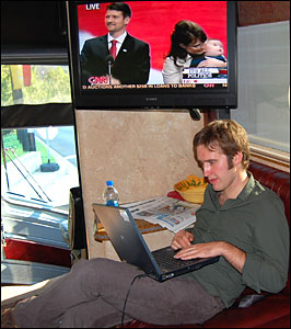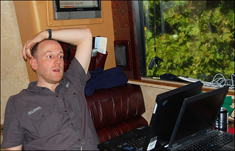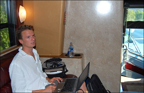 Ngồi một góc không chú ý đến cuộc tranh luận là Jon Kelly, người sẽ tường thuật về các diễn biến dọc theo hành trình của chuyến xe bus trên blog được đăng trên mạng BBC tiếng Anh.