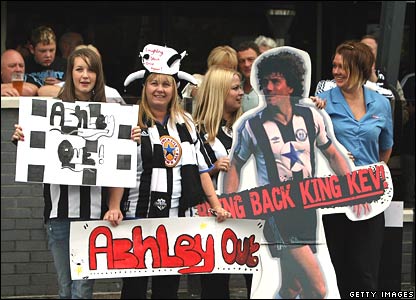 Newcastle Utd 1-2 Hull City: Các fan của Newcastle biểu tình phản đối sự ra đi của Kevin Keegan tại sân St James' Park rất lâu trước khi trận đấu bắt đầu.