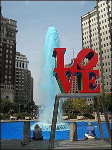 Công viên trước tòa thị chính Philadelphia, nơi có đài phun nước màu xanh và logo LOVE (Tình Yêu) màu đỏ nổi tiếng trong các tác phẩm điện ảnh, dường như vẫn không thay đổi trong cơn bão tài chính.