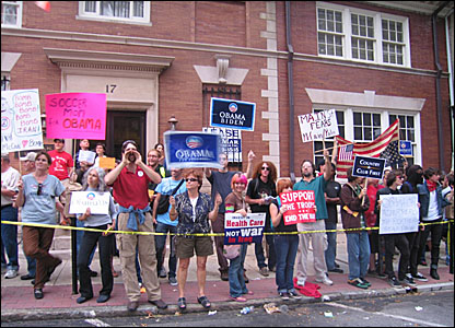 Phe ủng hộ Obama biểu tình chống phe John McCain ngay trên đường phố Philadelphia. |
