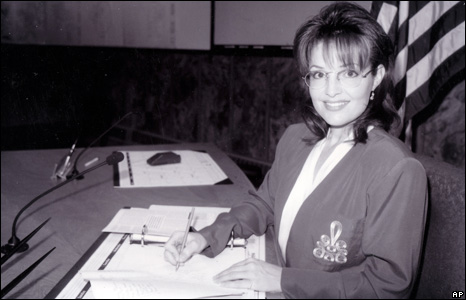 Trong hình là bà Sarah Palin khi còn là thành viên hội đồng thành phố ở Alaska hồi giữa những năm 90. Được biết bà đã tiêu xài tới 150 ngàn đôla từ tiền của đảng Cộng hòa nhằm cải thiện hình ảnh.