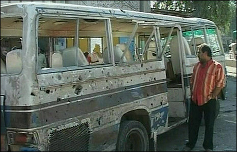 Một chiếc xe bus nhỏ chở các nữ sinh đã bị hư hại nặng vì vụ đánh bom. Một số trẻ em và phụ nữ được biết nằm trong số những người thiệt mạng.