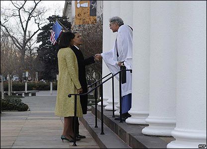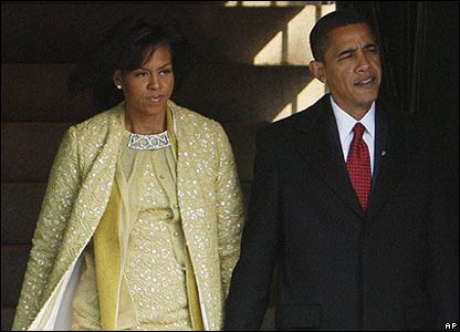 Ông Obama và đệ nhất phu nhân tương lai Lady Michelle, bắt đầu buổi sáng bằng việc rời nhà Blair nơi họ đã ở trước khi chuyển vào Nhà trắng.