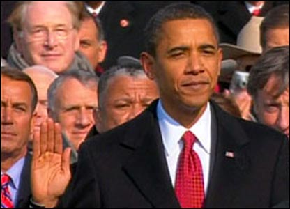 Barack Obama tuyên thệ nhậm chức tổng thống thứ 44 của Mỹ và trở thành nhà lãnh đạo cao nhất người Mỹ gốc Phi đầu tiên của Hoa Kỳ.
