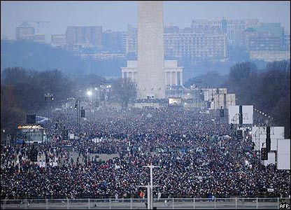 Hơn một triệu người tập hợp tại Quảng trường quốc gia tại thủ đô Washington giữa mùa đông lạnh giá, để chứng kiến ông Obama tuyên thệ nhậm chức ngay trước lúc 1200 giờ địa phương (1700 GMT).