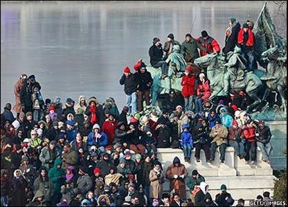 Mọi người đổ về quảng trường quốc gia từ sáng sớm, bất chấp thời tiết băng giá, một số người đã đi từ rất xa tới để có thể nói họ đã có mặt ở thủ đô trong ngày trọng đại.