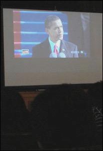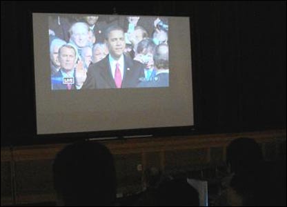 Giây phút ông Barack H. Obama nhận chức được nhiều người theo dõi trực tiếp qua màn hình.