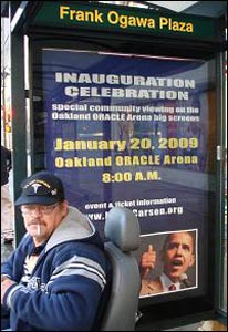 Hai triệu người có mặt ở Thủ Đô Washington để chứng kiến ông Barack H. Obama nhậm chức Tổng Thống Hoa Kỳ. Tại nhiều nơi khác, như trong tờ quảng cáo trên ở thành phố Oakland, có tụ điểm để cho dân xem trực tiếp biến cố lịch sử này qua màn hình.