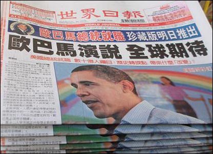 Báo tiếng Hoa cũng dành trang nhất cho ngày trọng đại 20.1.2009