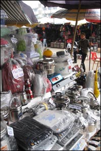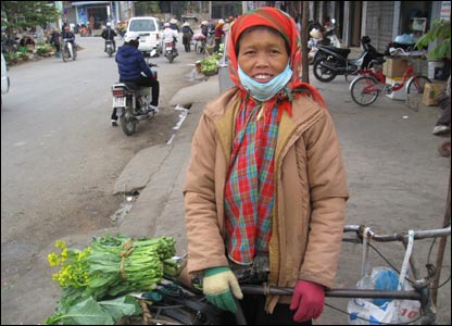 Một phụ nữ dân tộc Tày bán mấy mớ rau cải trên xe đạp vì không có quầy to trong chợ như người Kinh. Cuộc chiến 1979 giữa hai chính quyền trung ương đã gây ra nhiều đau khổ cho các sắc tộc biên giới.