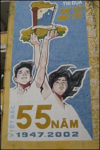 Khẩu hiệu trong một ngôi trường chỉ nhắc lại thời Việt Minh kháng Pháp, khi Trung Quốc dần dà trở thành đồng minh số một.