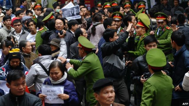 Hàng trăm người tham gia biểu tình chống Trung Quốc ở trung tâm Hà Nội sáng ngày 9/12, nhưng nhanh chóng bị cảnh sát tới dẹp.