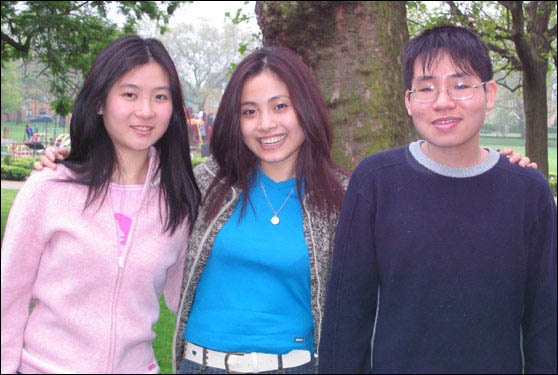 Từ trái sang Thanh Hà, Thùy Dương và Trọng Trí tại công viên Deptford ở Đông Nam Luân Đôn.