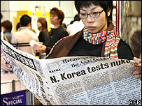 Bộ Ngoại giao Trung Quốc đã kêu gọi Hội đồng Bảo an LHQ có hành động thích hợp để phản đối việc Bắc Hàn thử hạt nhân. Bắc Kinh, đồng minh truyền thống của Bình Nhưỡng, trong quá khứ từng không muốn đưa ra những lời lẽ đao to búa lớn, thế nhưng nay phát ngôn nhân Bộ Ngoại giao Lưu Kiến Siêu nói vụ thử hạt nhân có thể gây hại cho quan hệ giữa hai nước. "Cộng hòa Dân chủ nhân dân Triều Tiên đã bất chấp quan điểm chung của cộng đồng quốc tế và tiến hành thử vũ khí hạt nhân." "Trung Quốc kiên quyết phản đối việc này và hành động này của CHDCND Triều Tiên đã gây ảnh hưởng tới quan hệ với Trung Quốc." Ông Lưu không bác bỏ khả năng LHQ áp dụng trừng phạt đối với Bình Nhưỡng, nhưng nhận xét rằng trừng phạt quân sự là điều không tưởng tượng nổi. "Chúng tôi kiên quyết phản đối dùng quân sự để giải quyết việc trang bị vũ khí hạt nhân trên bán đảo Triều Tiên. Đó là quan điểm trước sau như một của chúng tôi." Mỹ gây sức ép Đại sứ Hoa Kỳ tại LHQ, John Bolton đã ra sức bảo vệ đường lối ngoại giao mà chính quyền ông Bush áp dụng đối với Bắc Hàn. Trong một cuộc phỏng vấn với BBC, ông Bolton nói rằng Hoa Kỳ không tạo ra các chế độ ma quỉ trên thế giới.