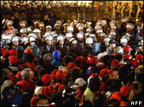 Những người biểu tình tại Đài loan xuống đường kêu gọi tổng thống Trần Thủy Biển từ chức sau khi các công tố viên tuyên bố có đủ bằng chứng để buộc ông vào tội tham nhũng mặc dù ông được miễn truy tố do là tổng thống. Hôm thứ sáu, vợ ông cùng ba người trợ lý trước đây của ông bị buộc tội sử dụng tiền của nhà nước một cách sai trái. Uy tín của ông Trần Thủy Biển bị ảnh hưởng nghiêm trọng sau một loạt các vụ scandal liên quan đến gia đình ông và văn phòng của ông trong những tháng gần đây. Ông đã vượt qua hai lần bị phía đối lập định lật đổ. Đảng cầm quyền DPP đã kêu gọi tổng thống giải thích với công chúng, và một người trợ lý của ông cho biết ông sẽ có bài phát biểu trong vòng hai ngày tới. Tuy nhiên, một trong những người trợ lý cũ của ông, Shih Ming-teh, đã dẫn đầu một đợt biểu tình không được chính quyền cho phép vào hôm thứ bảy đòi tổng thống từ chức. Các đảng đối lập chính nói rằng nếu tổng thống không từ chức, họ sẽ có đợt lật đổ thứ ba tại quốc hội vào tuần tới để buộc ông thôi chức tổng thống. | |||||||||||||||||||||||||||||||||||||||||||||||||||||||||||||||||||||||||||||