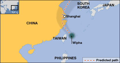 Bão Wipha sắp vào Thượng Hải