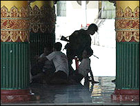 Khi tôi tới chùa Shwedagon - là ngôi chùa chính của Phật giáo Miến Điện và là một trong những tâm điểm của các cuộc biểu tình gần đây - chỉ có khoảng 20 người có mặt tại đó. Ngôi chùa này thường có hàng trăm người.