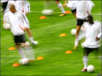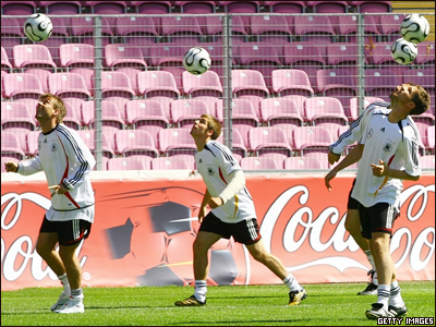 Tập dượt tại Stade de Geneve ở Geneava hôm 25/5/2006. Đức trong Bảng A cùng với Ecuador, Ba Lan và Costa Rica.