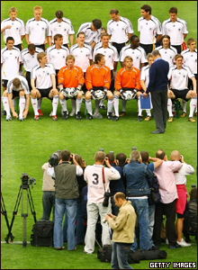 Đội tuyển Đức dự World Cup ra mắt báo chí hôm 25/5/2006 tại sân Stade de Geneve ở Geneva, Thụy Sĩ.
