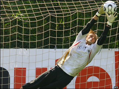 Thủ môn chính Jens Lehmann trong buổi tập dượt hôm 22/5/2006 ở Geneva.
