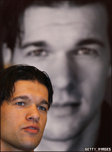 Đội trưởng tuyển Đức, Michael Ballack, tiền vệ của Bayern Munich trong buổi phát hành sách mới về anh hôm 13/4/2006 ở Munich.