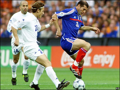 Totti đụng Zidan của Pháp trong trận chung kết Euro Cup 2000 mà Pháp thắng 2-1. | ||||||||||||||||||||||||||||||||||||||||||||||||||||||||||||||||||||||||||||||||