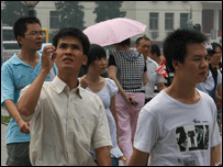 Trên thẻ ghi chỉ ghi tắt chức danh, và tên cơ quan mà bạn đại diện thì rất nhỏ, phải đứng thật gần mới đọc rõ. Hôm đứng trước ga tàu điện Vương Phủ Tỉnh phỏng vấn một số người dân, có ông già trung niên còn hỏi tôi có phải là tình nguyện viên người Trung Quốc không. Nhưng khi đeo cả thẻ và máy chụp ảnh Canon tương đối to trước ngực, lại nói chuyện không phải bằng tiếng Hoa, người ta đôi khi trở thành đối tượng gây chú ý. Trong tàu điện ngầm, một cậu sinh viên trạc 20 nhìn tôi hiếu kỳ: “Anh là nhà báo?” Khi tôi tự giới thiệu mình là người của BBC, cậu ta hỏi tôi có xem lễ khai mạc không, và thắc mắc vì sao Thủ tướng Anh không đến. Đó cũng là câu hỏi mà trước đó Giáo sư văn học Vương Ninh đặt ra khi tôi phỏng vấn ông ở Đại học Thanh Hoa. Sự có mặt của những người như Bush, Putin và Sarkozy làm người Trung Quốc tự hào, nhưng cũng làm họ khó hiểu vì sao không có đủ khách, vì sao những nước như Anh và Đức lại không góp mặt ở một sự kiện mà giới truyền thông quốc tế đều phải công nhận là hoành tráng, công phu. Chủ nghĩa dân tộc