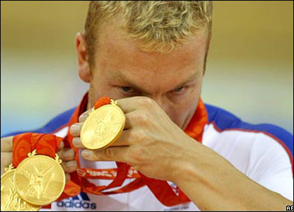 Chris Hoy của Scotland trở thành vận động viên Anh Quốc (Britain) đầu tiên giành được ba huy chương vàng tại một kỳ Thế Vận Hội sau khi vượt qua đồng đội Jason Kenny trong bộ môn đua xe đạp nước rút.