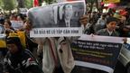 • Một người khác cầm ảnh lãnh đạo Trung Quốc với dòng chữ 'Đả đảo bè lũ Tập Cận Bình'. (Ảnh Reuters/stringer)