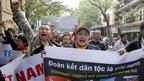 • Đoàn tuần hành hò reo nhiều khẩu hiệu, như 'Hoàng Sa, Trường Sa là của Việt Nam'; 'Đả đảo Trung Quốc xâm lược'... (Ảnh Reuters/stringer)