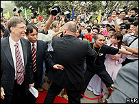 Bill Gates đã được hàng ngàn sinh viên Việt Nam chào đón như một ngôi sao nhạc Pop trong chuyến thăm của ông tới Việt nam.